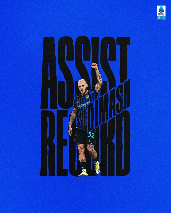 虽然OPTA统计迪马尔科助攻为16个,但意甲官方表示,迪马尔科本赛季联赛已送出17个助攻,创意甲历史纪录。